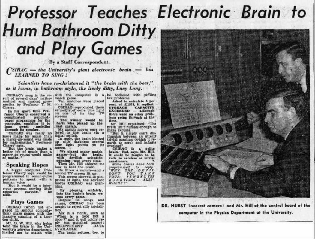 The Australian newspaper The Age devoted an article to the music composed by CSIRAC, 1960.